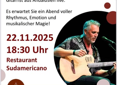 Throughout my career, I have combined teaching with performances in Spain and Germany, fusing Andalusian rock, jazz and flamenco, an essence that is reflected in my album Mergablo. In addition to concerts, I work on composition, editing and mixing from my studio in Conil, with albums like Tengo Mil Canciones available on Spotify. My goal is to continue sharing my music and my experience with those who want to learn and enjoy the art of the guitar.